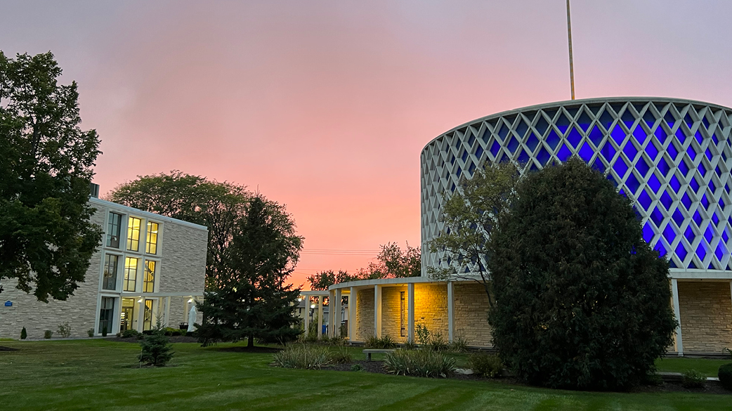 Dorcas Chapel is a central and cherished space at Marian University. Built in 1966, its unique circular design evokes a spool of thread and a needle—a nod to the university’s founders, the Congregation of Sisters of St. Agnes. The chapel is named for Dorcas, a woman from the Acts of the Apostles in the Bible, known for her ministry of making clothes for the poor, symbolizing a life of humble service. Today, the chapel remains a peaceful space for prayer, reflection, and weekly Masses, embodying the core of Marian’s spiritual life.